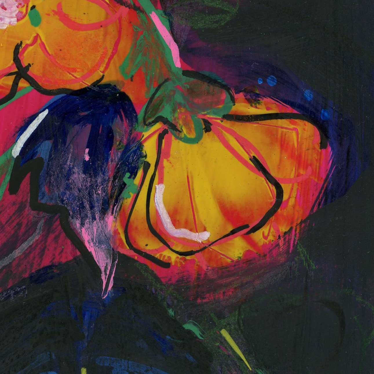 The original is mixed media - Rose loves building layers of acrylic, oil pastels, posca pens, charcoal, spray paint, so there's an incredible depth and detail that the print captures perfectly.