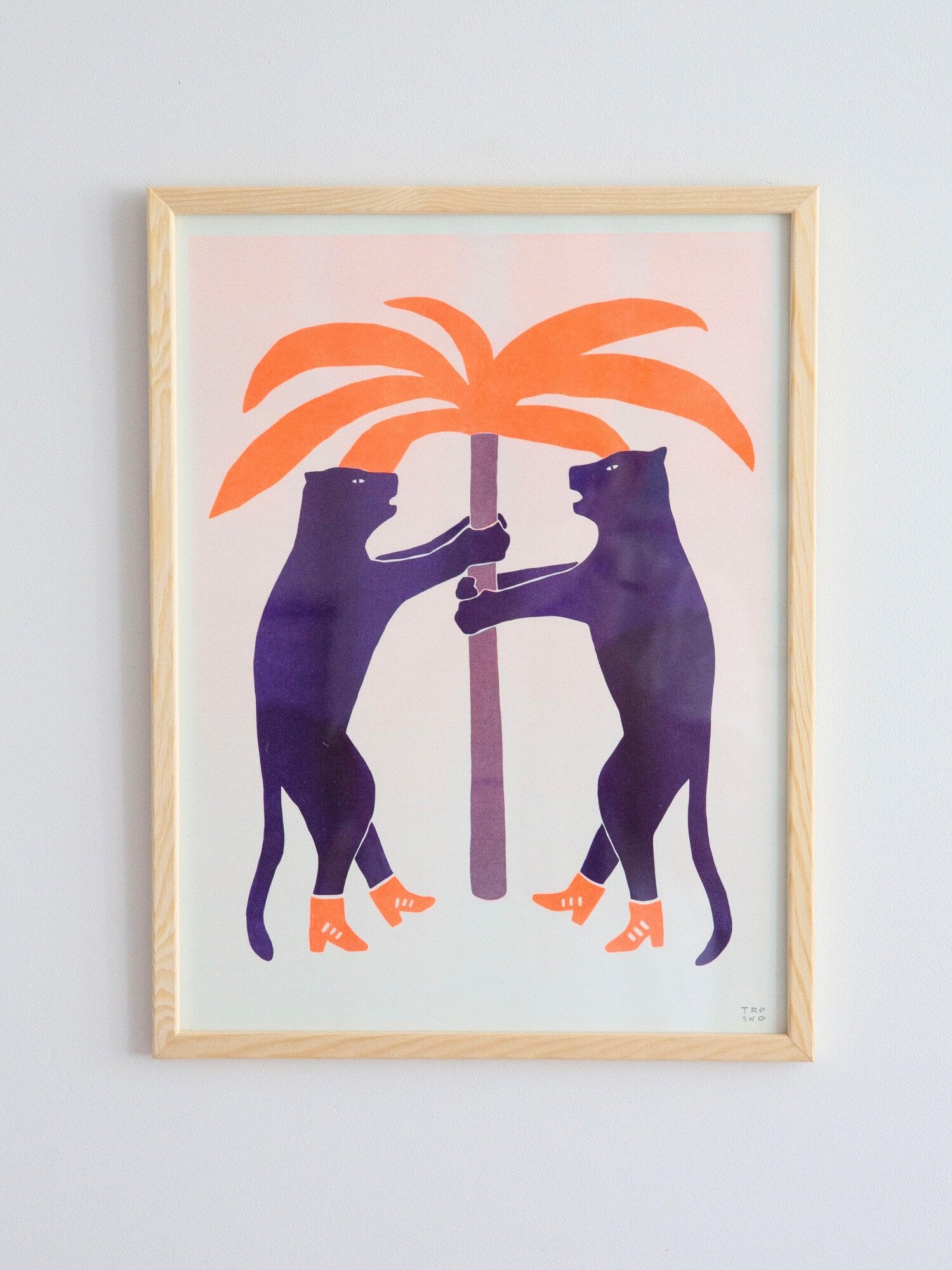 Cats in shoes / riso print wall art